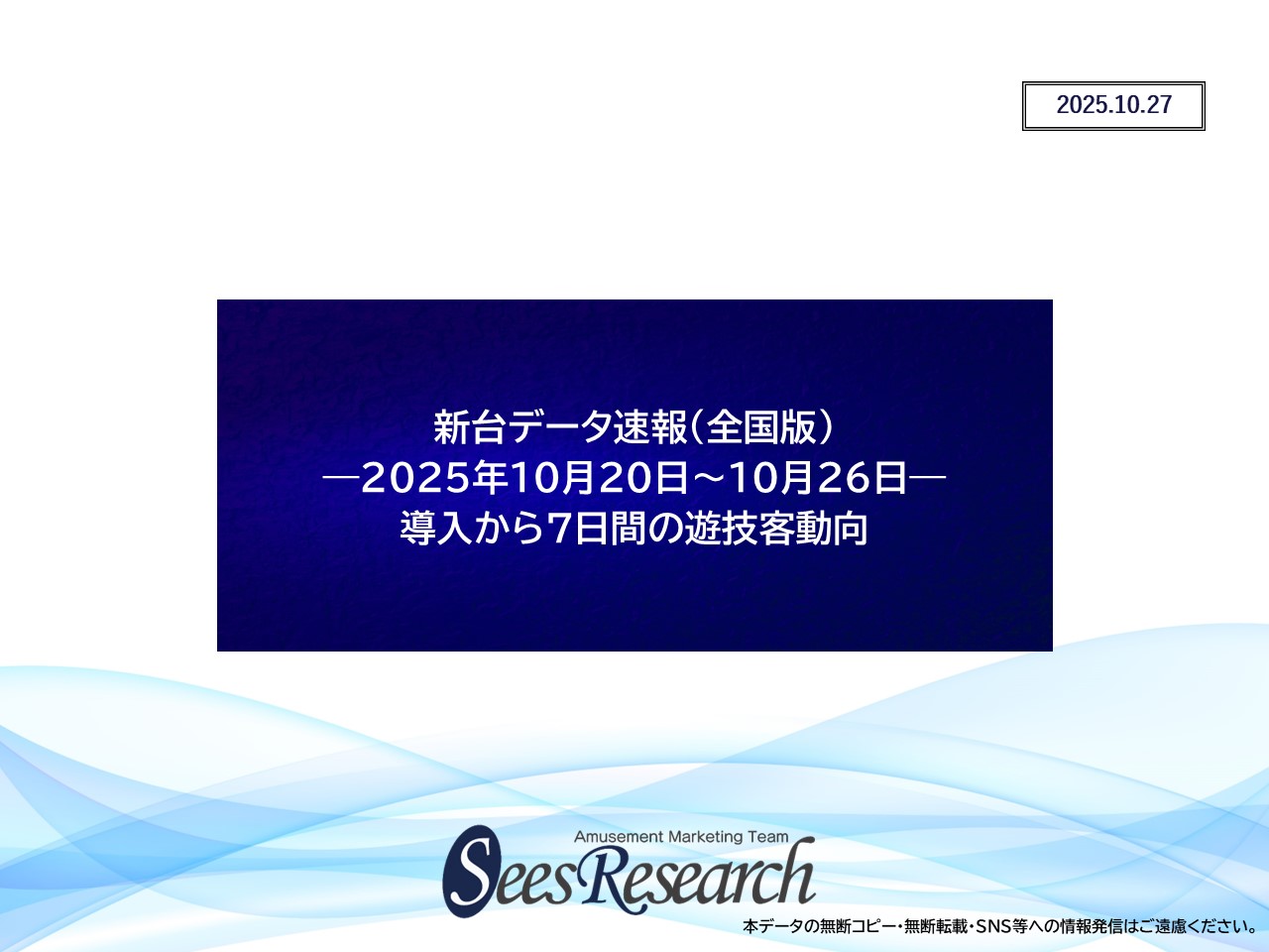 新台データ速報(全国版)10月20日から7日間の遊技客動向 2025.10.27 HOME レポート Uncategorized , x_新台データ速報 , 表示用カテゴリー 新台データ速報(全国版)10月20日から7日間の遊技客動向 レポートのダウンロードはこちらから Tweet Share Hatena